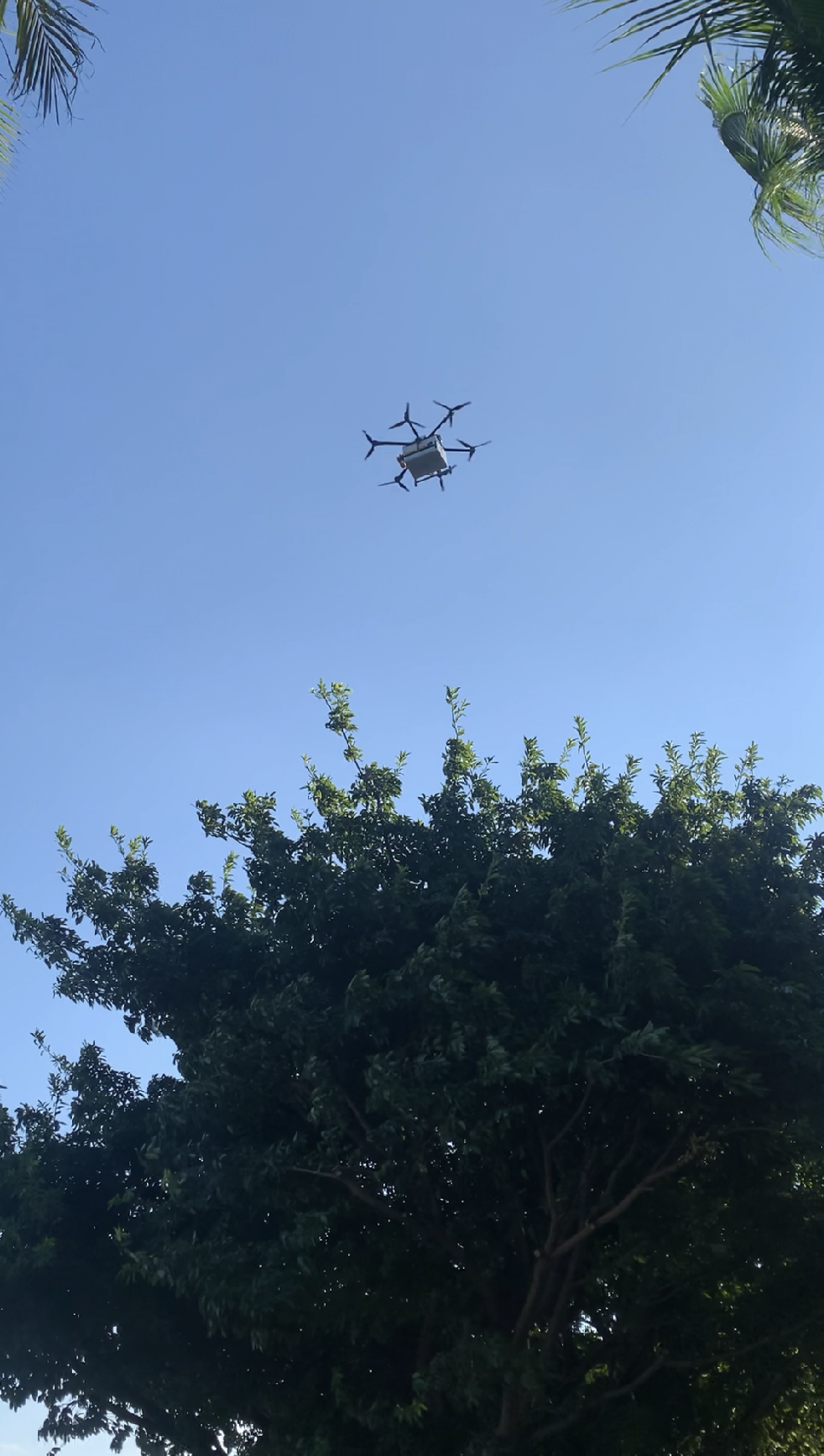 A drone delivering beverages to the order point where the