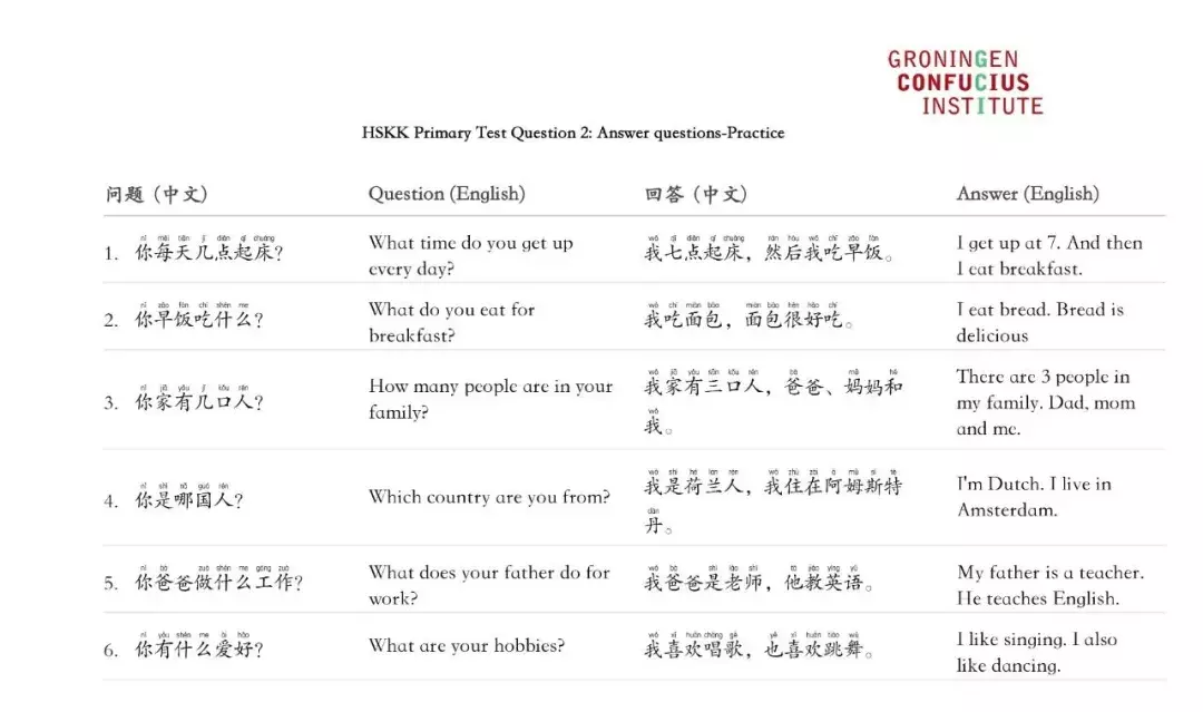 1. Try to repeat the question and replace the key question word with your answer. For example, if the question is “你喜欢什么运动?” (“What sport do you like?”), an answer in a complete sentence like “我喜欢踢足球” (“I like playing football”) is better than just saying “踢足球” (“playing football”). This ensures you get the basic score. If you're aiming for a full score, try to expand your answer, like: “我喜欢踢足球,踢足球很有意思。” (“I like playing football. It’s very fun.”)