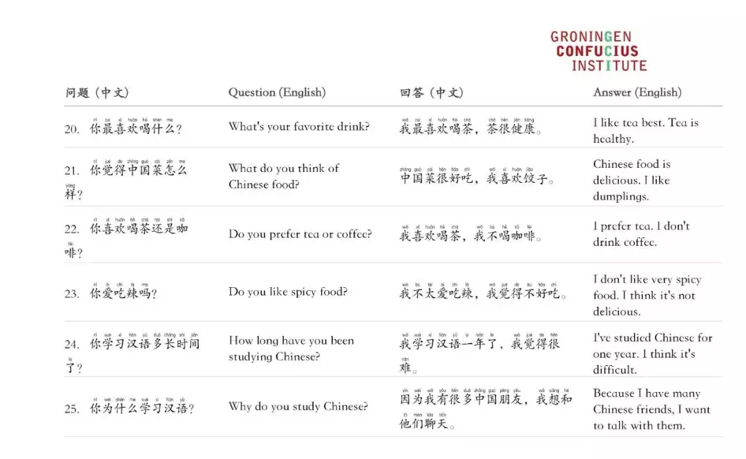 Question: 你喜欢喝茶吗?("Do you like drinking tea?")