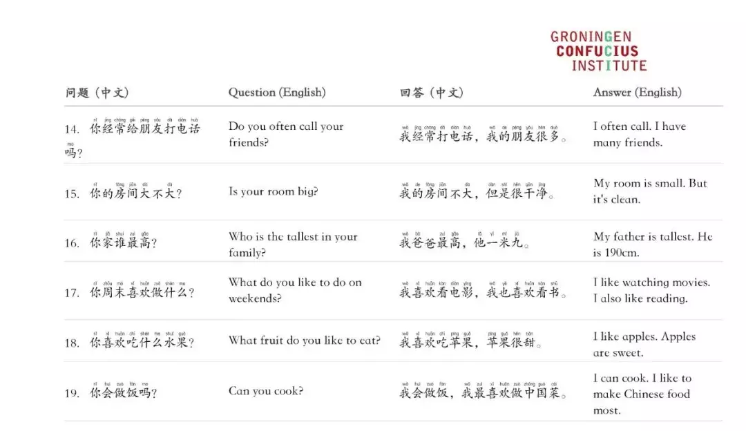 Question: 你周末经常做什么?("What do you usually do on weekends?")
